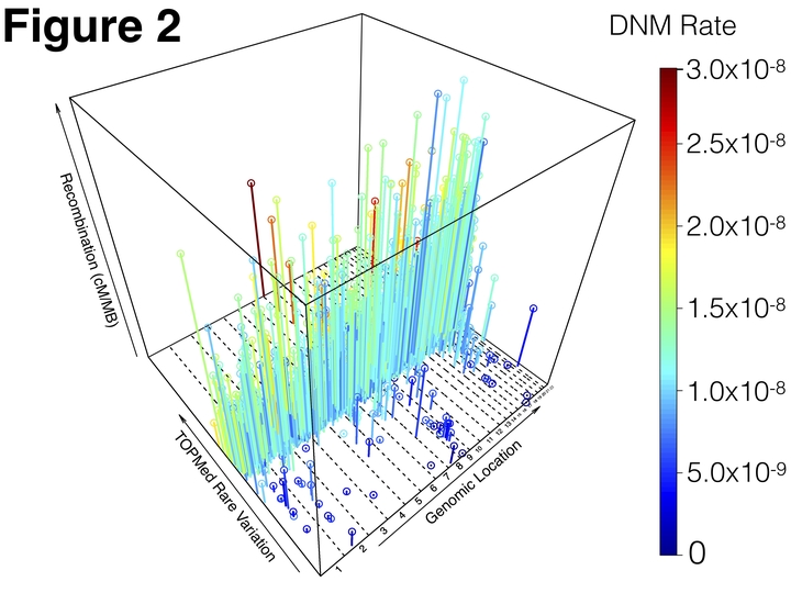 De novo mutations (DNMs), or mutations that appear in an individual despite not being seen in their parents, are an important source of genetic variation whose impact is relevant to studies of human evolution, genetics, and disease. Utilizing high-coverage whole-genome sequencing data as part of the Trans-Omics for Precision Medicine (TOPMed) Program, we called 93,325 single-nucleotide DNMs across 1,465 trios from an array of diverse human populations, and used them to directly estimate and analyze DNM counts, rates, and spectra. We find a significant positive correlation between local recombination rate and local DNM rate, and that DNM rate explains a substantial portion (8.98 to 34.92%, depending on the model) of the genome-wide variation in population-level genetic variation from 41K unrelated TOPMed samples. Genome-wide heterozygosity does correlate with DNM rate, but only explains <1% of variation. While we are underpowered to see small differences, we do not find significant differences in DNM rate between individuals of European, African, and Latino ancestry, nor across ancestrally distinct segments within admixed individuals. However, we did find significantly fewer DNMs in Amish individuals, even when compared with other Europeans, and even after accounting for parental age and sequencing center. Specifically, we found significant reductions in the number of C→A and T→C mutations in the Amish, which seem to underpin their overall reduction in DNMs. Finally, we calculated near-zero estimates of narrow sense heritability (h2), which suggest that variation in DNM rate is significantly shaped by nonadditive genetic effects and the environment.