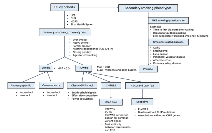 Human genetic studies of smoking behavior have been thus far largely limited to common variants. Studying rare coding variants has the potential to identify drug targets. We performed an exome-wide association study of smoking phenotypes in up to 749,459 individuals and discovered a protective association in CHRNB2, encoding the β2 subunit of the α4β2 nicotine acetylcholine receptor. Rare predicted loss-of-function and likely deleterious missense variants in CHRNB2 in aggregate were associated with a 35% decreased odds for smoking heavily (odds ratio (OR) = 0.65, confidence interval (CI) = 0.56–0.76, P = 1.9 × 10−8). An independent common variant association in the protective direction (rs2072659; OR = 0.96; CI = 0.94–0.98; P = 5.3 × 10−6) was also evident, suggesting an allelic series. Our findings in humans align with decades-old experimental observations in mice that β2 loss abolishes nicotine-mediated neuronal responses and attenuates nicotine self-administration. Our genetic discovery will inspire future drug designs targeting CHRNB2 in the brain for the treatment of nicotine addiction.